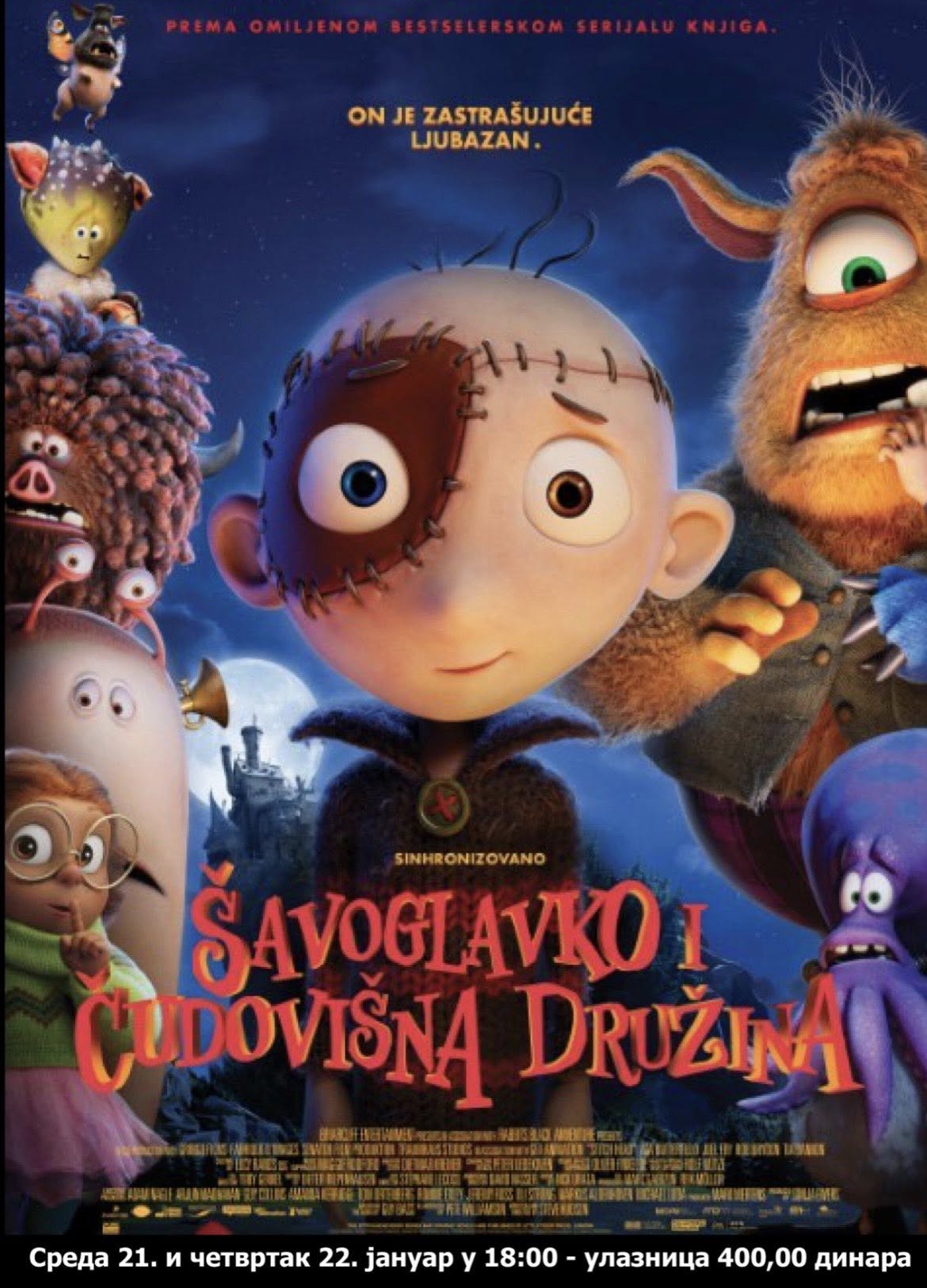 У среду (21.1.2026.) и четвртак (22.1.2026.) са почетком у 18.00 биће одржана пројекција играног филма „ШАВОГЛАВКО И ЧУДОВИШНА ДРУЖИНА“.