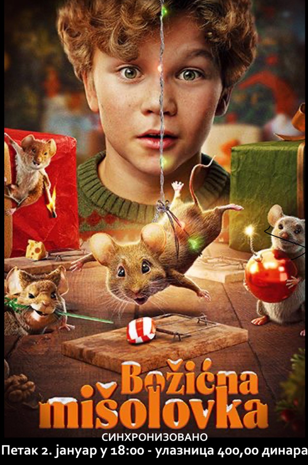 У петак, 2. јануара 2026. године са почетком у 18.00 биће одржана пројекција анимирано – играног филма „БОЖИЋНА МИШОЛОВКА“.