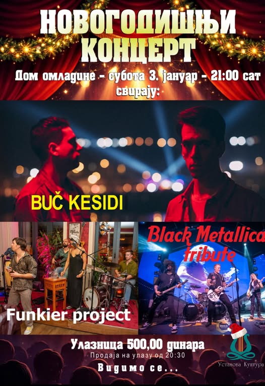 У суботу, 3. јануара 2025. године одржаће се новогодишњи концерт у Дому омладине.